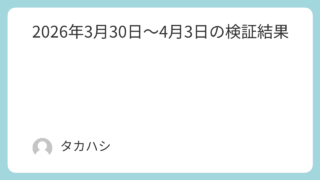 週間成績 2026年3月30日~4月3日の検証結果 システムトレード実践検証結果日中オーバーナイト公式サイトうちでのこづち+670円-★こちら★サンクス2019▲1,220円-★こちら★ロングリッチ2019-+3,290円ロングリッチ2018+1,400円-パターントレード2017+1,05... 2026.04.04 週間成績
